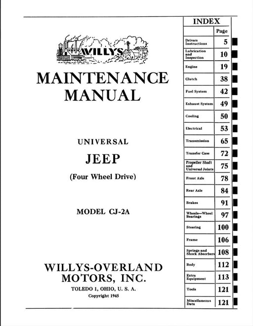Manual 1945-1949 Catalog Jeep CJ-2A Maintenance Manual 133-45WJMM