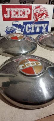 In great original condition these hub caps would finish any Jeep restoration.